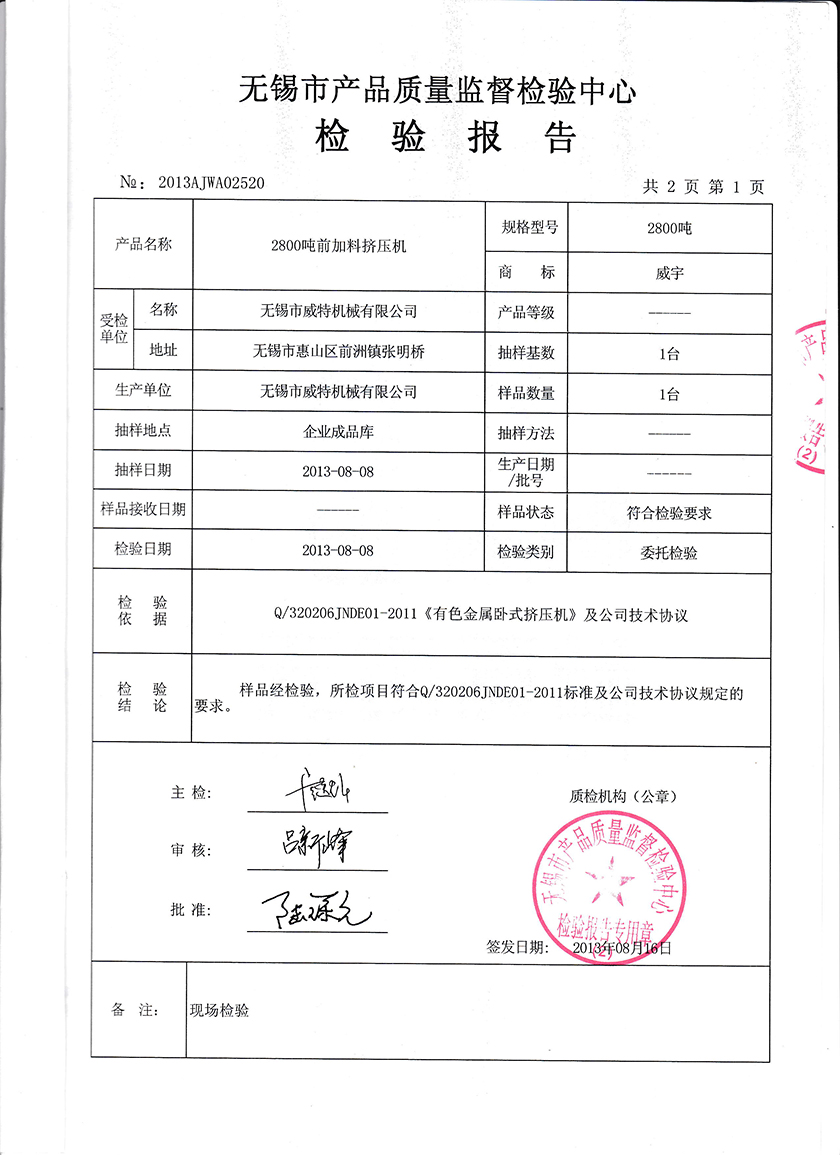 2800噸前加料擠壓機 |